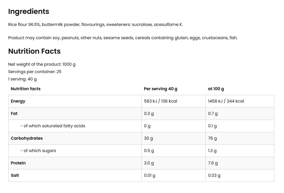 • GLUTÉNMENTES TERMÉK - A rizsliszt gluténmentes, így a terméket szabadon használhatják azok is, akik allergiásak erre az összetevőre.