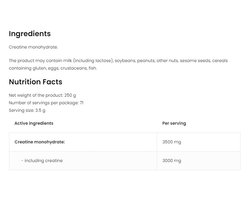 • A kreatin forrása - Az étrend-kiegészítő egy adagja 3500 mg kreatin-monohidrátot biztosít a szervezet számára.
