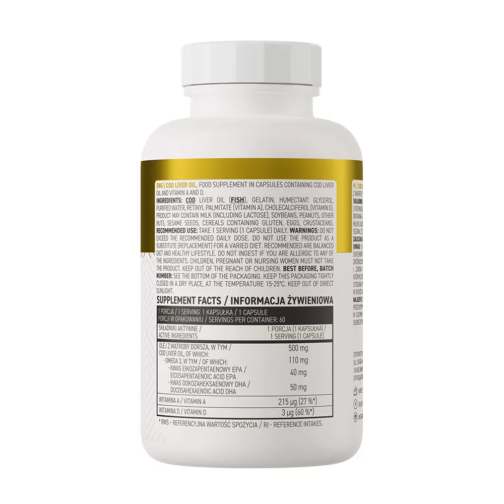 Az OstroVit Cod Liver Oil egy olyan étrend-kiegészítő készítmény, amelyet az atlanti-óceáni tőkehalmájból nyert olaj alapján hoztak létre, amelyet ráadásul olyan értékes összetevőkkel dúsítottak, mint az A- és D-vitamin. A könnyen lenyelhető kapszula formájában kapható készítményt olyan tudatos fogyasztók számára hozták létre, akik értékes vegyületeket szeretnének a szervezetükbe juttatni.