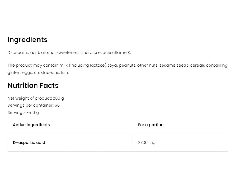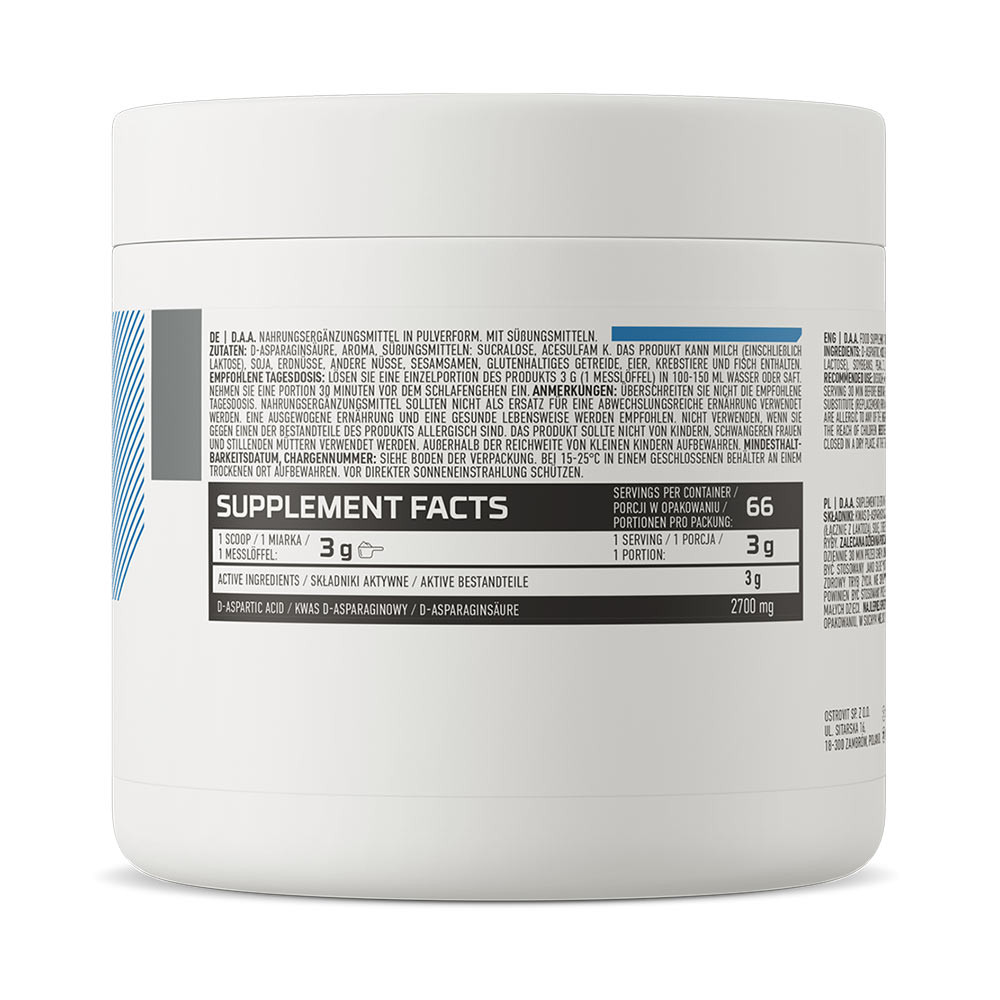Az OstroVit D.A.A. egy kiváló minőségű, korszerű készítmény, amely kizárólag egyetlen anyagból, D-aszparaginsavból áll, ezúttal málnaízű változatban. A terméket egy mikronizációs eljárásnak alávetve töredezetté tették, ami még jobb biológiai hozzáférhetőséget tesz lehetővé.