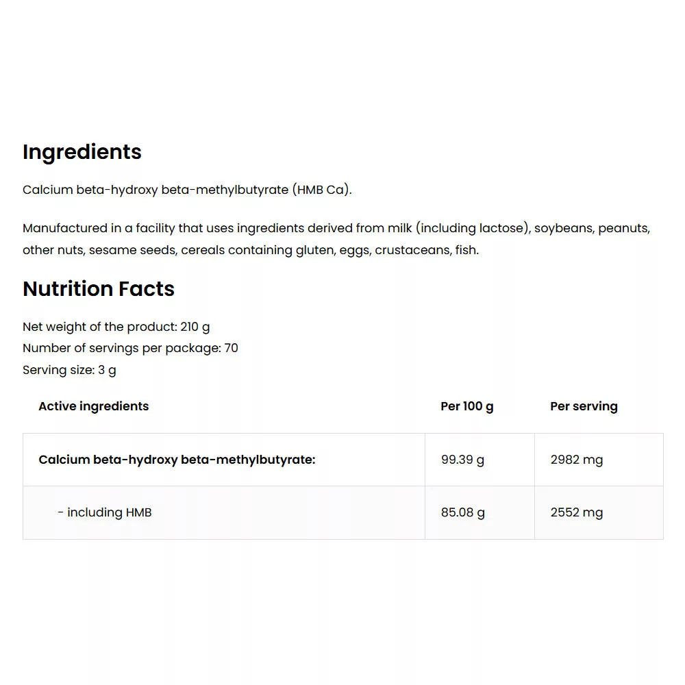 • Egyszerű összetétel - A termék csak HMB-t tartalmaz, felesleges adalékanyagok nélkül.