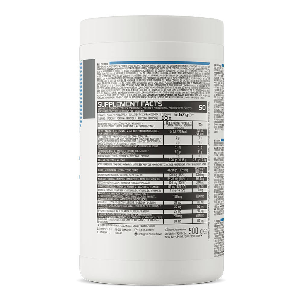 Az OstroVit Isotonic egy olyan étrend-kiegészítő, amelynek célja egy izotóniás italoldat készítése, amely értékes anyagokat és elektrolitokat tartalmaz, például BCAA-kat, magnéziumot, káliumot vagy L-glutamint. Kényelmes porformában kapható, frissítő citromos-mentás ízzel. A terméket sportolók és fizikailag aktív emberek számára hozták létre, akik értékes összetevőkkel szeretnék kiegészíteni étrendjüket.