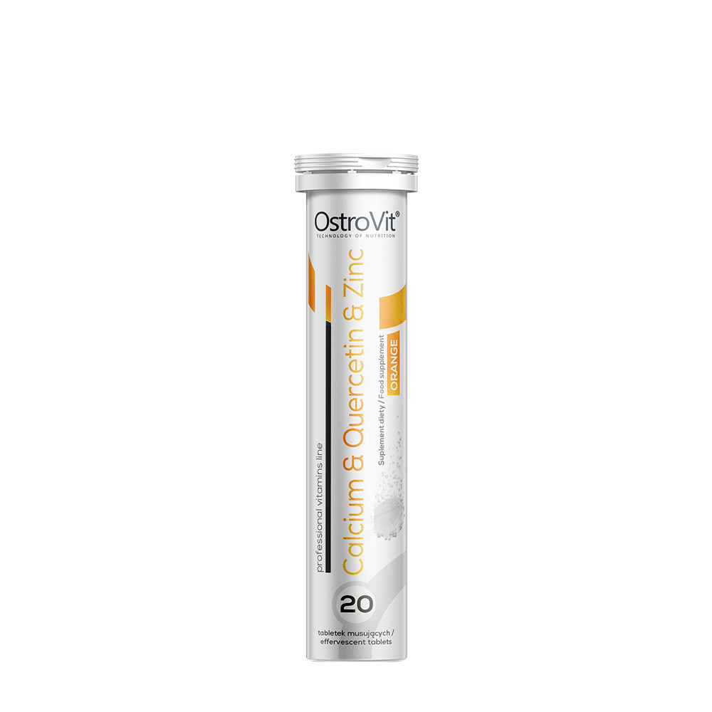 Az OstroVit Calcium Quercetin Cink egy pezsgőtabletta formájában megjelenő étrend-kiegészítő készítmény, amely három különböző hatóanyagot tartalmaz. A terméket olyan emberek számára hozták létre, akik kalciummal, kvercetinnel és cinkkel szeretnék kiegészíteni étrendjüket, és akik nem szeretik a szájon át szedhető tabletta formájában történő kiegészítést. Csak oldd fel a tablettát vízben, és vedd be a kész folyadékot finom, narancsos ízzel.