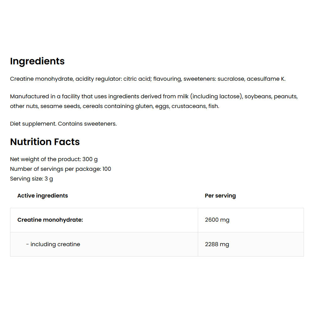 Az OstroVit Creatine Monohydrate-ban található összetevők tulajdonságai: