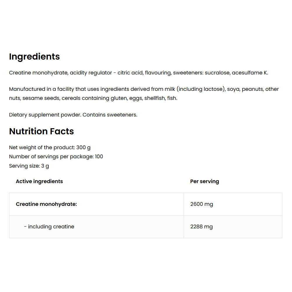 Az OstroVit Creatine Monohydrate-ban található összetevők tulajdonságai: