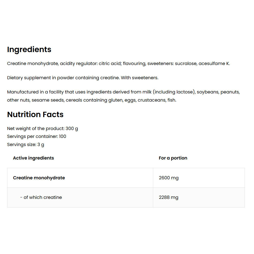 Az OstroVit Creatine Monohydrate-ban található összetevők tulajdonságai: