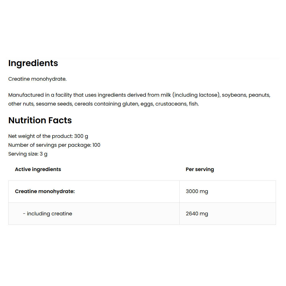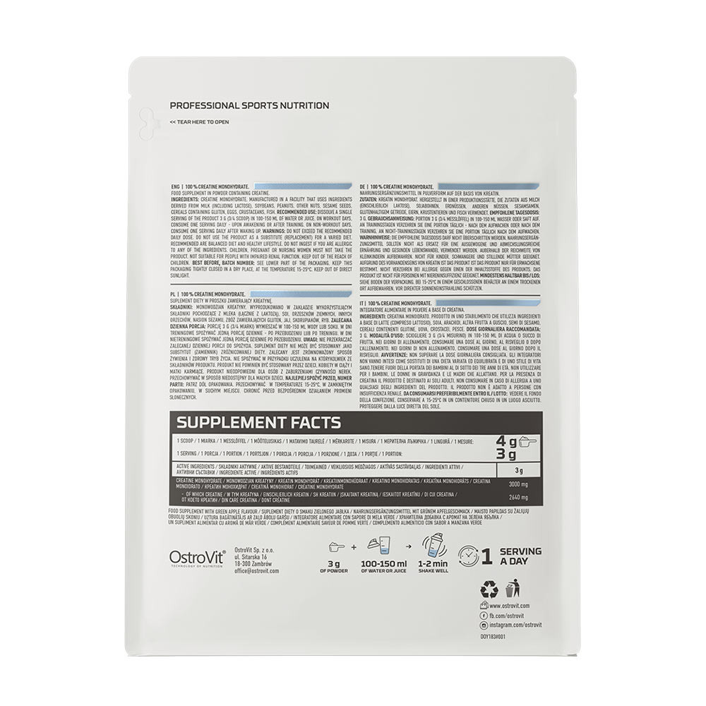 Az OstroVit Creatine Monohydrate-ban található összetevők tulajdonságai:
