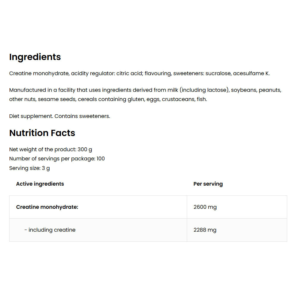 Az OstroVit Creatine Monohydrate-ban található összetevők tulajdonságai: