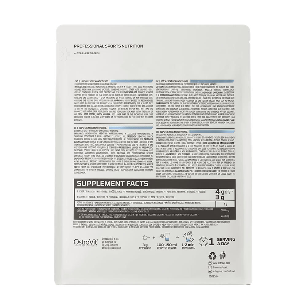 Az OstroVit Creatine Monohydrate-ban található összetevők tulajdonságai: