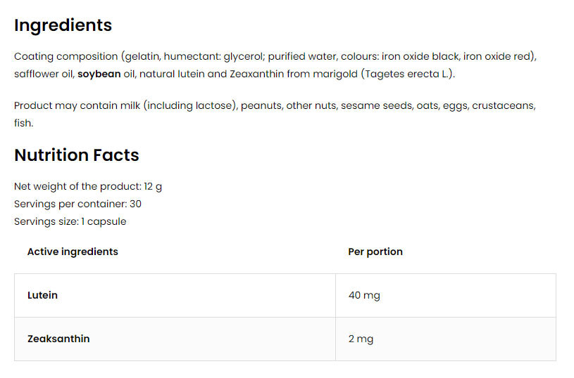 Az OstroVit Lutein FORTE-ban található összetevők tulajdonságai: