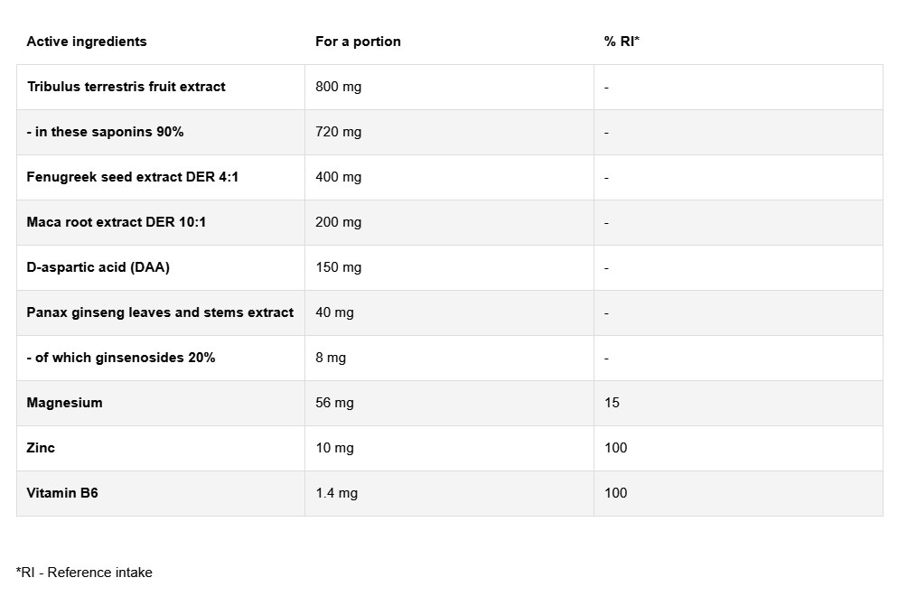 A tesztoszteron az androgének csoportjába tartozó szerves kémiai vegyület, az elsődleges férfi szteroid nemi hormon. A tesztoszteron elősegíti a vitalitást és a jó közérzetet. Részt vesz a jó hangulat fenntartásában, a szexuális vágy a magas libidó növelésében, valamint az izomtömeg és az erőfejlesztésében. Az életkor előrehaladtával ennek a férfi hormonnak a szintje csökkenni kezd, ezért olyan fontos, hogy a felső fiziológiás tartományban tartsuk. Az OstroVit Testo Booster egy olyan kiegészítő, amely speciálisan kifejlesztett formulájával biztosítja, hogy soha többé nem kell aggódnod a tesztoszteronszinted miatt. Egy adag mindössze napi 3 kapszulát jelent, amely kizárólag természetes gyógynövénykivonatokból és alapvető ásványi anyagokból áll, mint például: