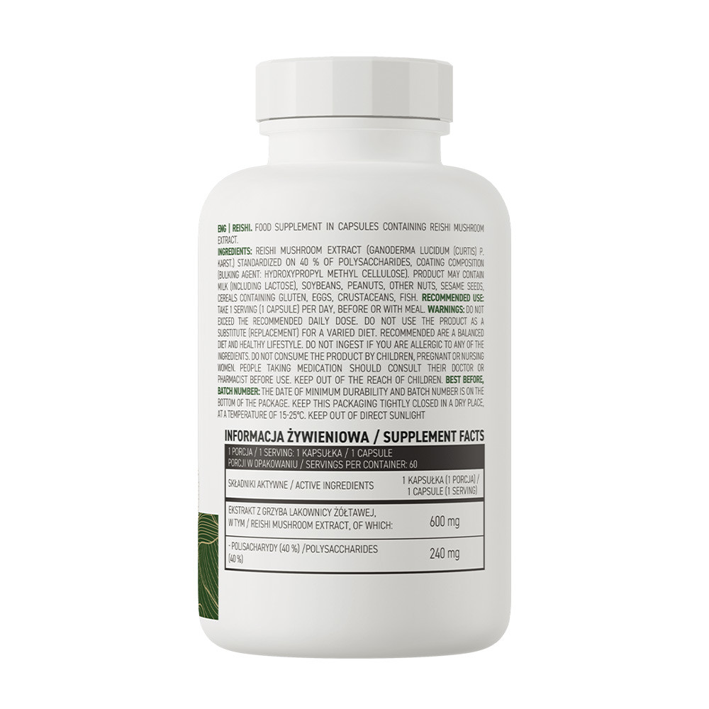 • 40% DER 20:1 poliszacharidokra standardizált Reishi gomba kivonatot tartalmaz - Az étrend-kiegészítő egy adagja 600 mg kivonatot biztosít a szervezet számára.