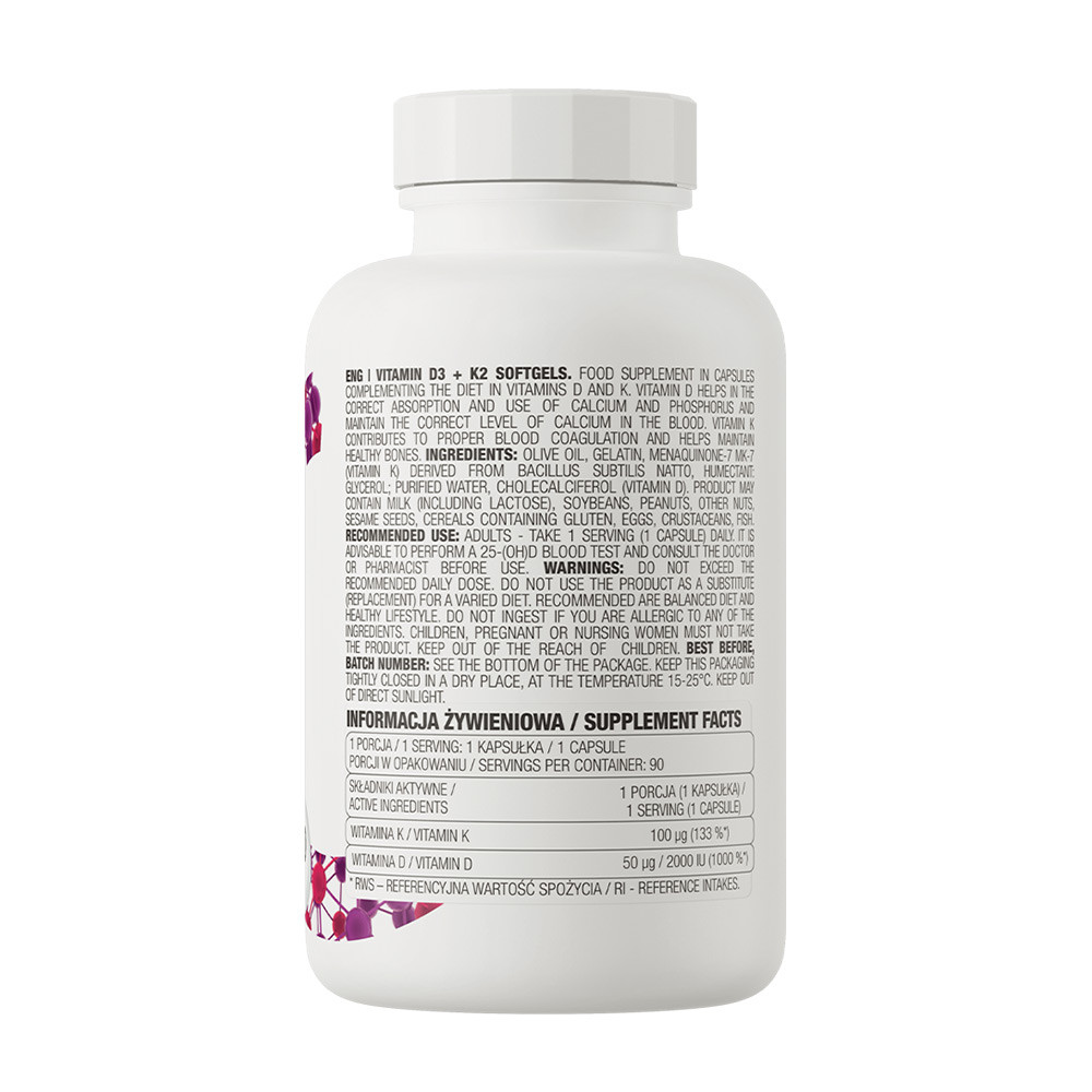 Az OstroVit Vitamin D3 + K2 egy étrend-kiegészítő, amely D3-vitamin és K2-vitamin MK-7, azaz a vegyület emberi szervezet által legjobban felszívódó formája. Ez egy kiváló minőségű, könnyen lenyelhető kapszula formájában kapható készítmény, amelyet azoknak az embereknek hoztak létre, akik a napi étrendjüket értékes összetevőkkel szeretnék kiegészíteni.