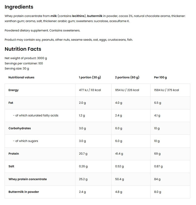 Egy adag 30 g (2,5 mérőkanál) terméket oldj fel 200 ml tejben vagy vízben. Szükség szerint naponta 1-2 adagot fogyassz.