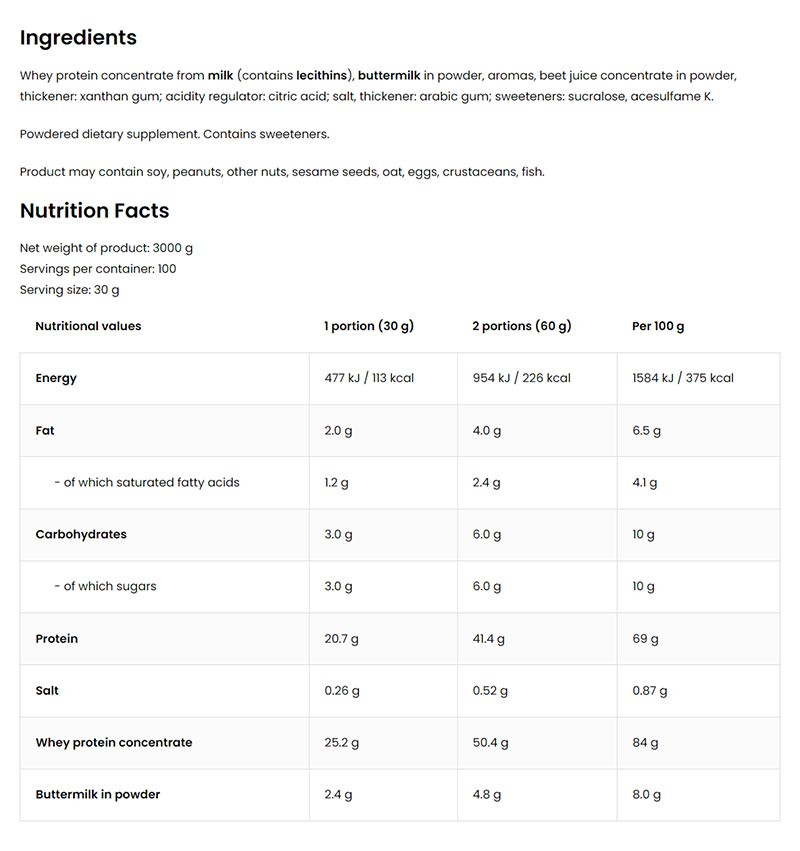 Egy adag 30 g (2,5 mérőkanál) terméket oldj fel 200 ml tejben vagy vízben. Szükség szerint naponta 1-2 adagot fogyassz.