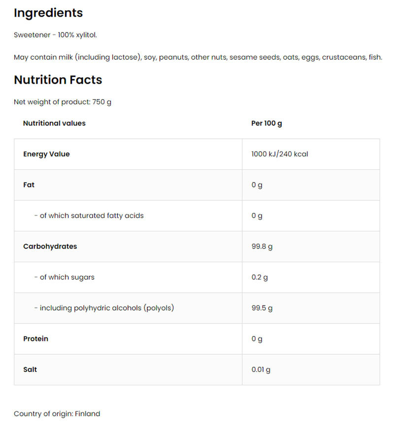 OstroVit Xylitol a finn nyírfa kérgéből vonják ki, néhány olcsó kínai hamisítványhoz képest. Kellemes, enyhe menta aromája van, és a hagyományos szacharózhoz hasonló édességgel rendelkezik.