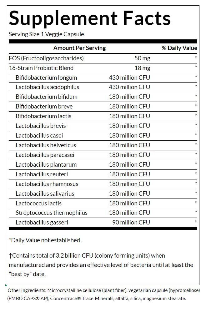 Swanson Dr. Stephen Langer's Ultimate 16 Strain Probiotic with FOS 3.2 BILLION CFU (60 Veg Kapszula)