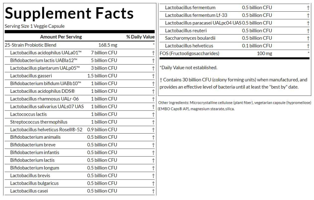 Optimalizáld belső környezeted, hogy fokozd egészséged és vitalitásod a Swanson Epic Pro 25-törzsű probiotikummal, a valaha volt legátfogóbb széles spektrumú probiotikum-kiegészítőnkkel! A probiotikumokként ismert "barátságos" mikrobáknak számos jótékony hatása lehet az egészségédre és jólétedre, az egészséges emésztés és a tápcsatorna működésének elősegítésétől kezdve az erős immunrendszer támogatásán át a mentális és érzelmi jólét fenntartásáig. Ezért egyre több egészségügyi szakember hangsúlyozza a bélrendszerben lévő egészséges mikrobiális egyensúly fenntartásának fontosságát, amely alapvető fontosságú a holisztikus wellness-kezelésben. Az Epic Pro 25 Strain Probiotic 30 milliárd CFU probiotikus organizmust biztosít 25 válogatott törzsből, beleértve a bifidobacterium 7 faját és a Saccharomyces boulardii probiotikus élesztőt - plusz prebiotikus fructooligosacchardies-t, hogy táplálja és segítse őket a gyarapodásban - olyan vegetáriánus kapszulákba csomagolva, amelyeket úgy terveztek, hogy ellenálljanak a gyomorsavaknak és biztonságosan juttassák el őket az alsó GI traktusba. Ez a tökéletes módja annak, hogy megerősítsd mikrobiális szövetségeseid és megvédd jó egészséged.