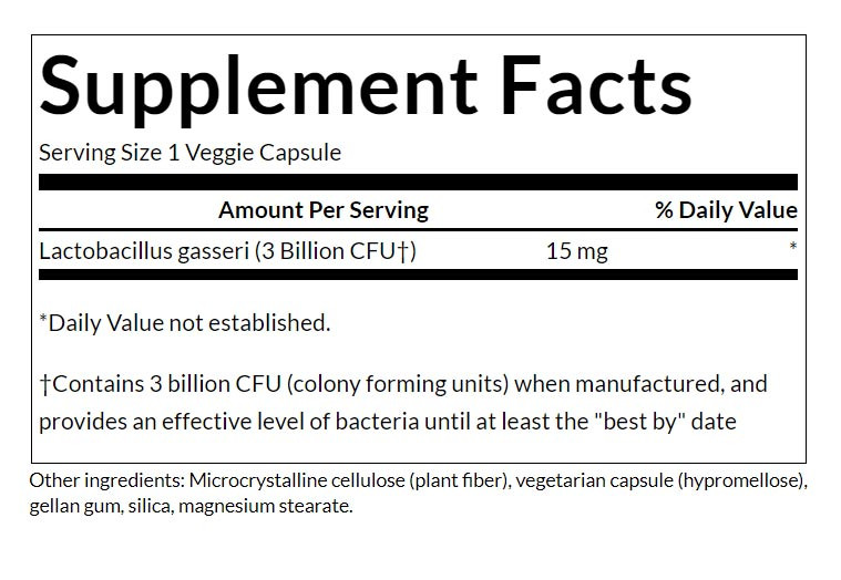 A Swanson Probiotics Lactobacillus Gasseri 3 milliárd életképes organizmust csomagol saválló, vegetáriánus kapszulákba, amelyek lehetővé teszik, hogy az optimális eredmények érdekében épségben eljussanak az alsó tápcsatornába. Nincs szükség hűtésre.