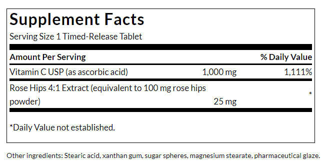 Ez az időzített felszabadulású formula fokozatosan adagol 1000 mg C-vitamint és 100 mg csipkebogyót.