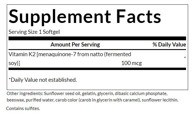 A Swanson K2-vitamin a nattóból, egy fermentált szójatermékből származik, amely a K2 leggazdagabb természetes forrása, és a menakinon-7-et napraforgómagolaj-alapú lágygélben biztosítja a jobb felszívódást.