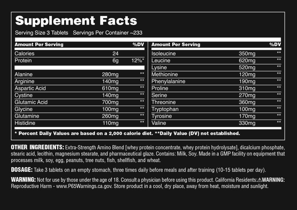 Fogyassz 3 tablettát üres gyomorra napi 3 alkalommal, étkezések előtt és edzés után.