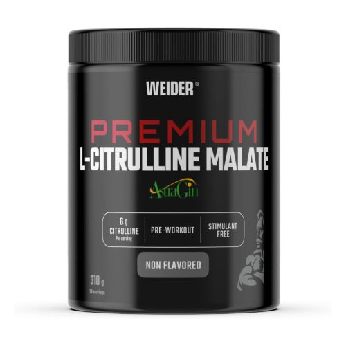 A Weider Premium L-citrullin Malát egy edzés előtti formula. 310 g ízesítetlen terméket tartalmaz. 99% L-citrullin malát (6g/adag), AstraGin hozzáadásával a jobb felszívódás érdekében. Fokozza a teljesítményt és növelheti az energiát. Stimulánsmentes. 36 adag.