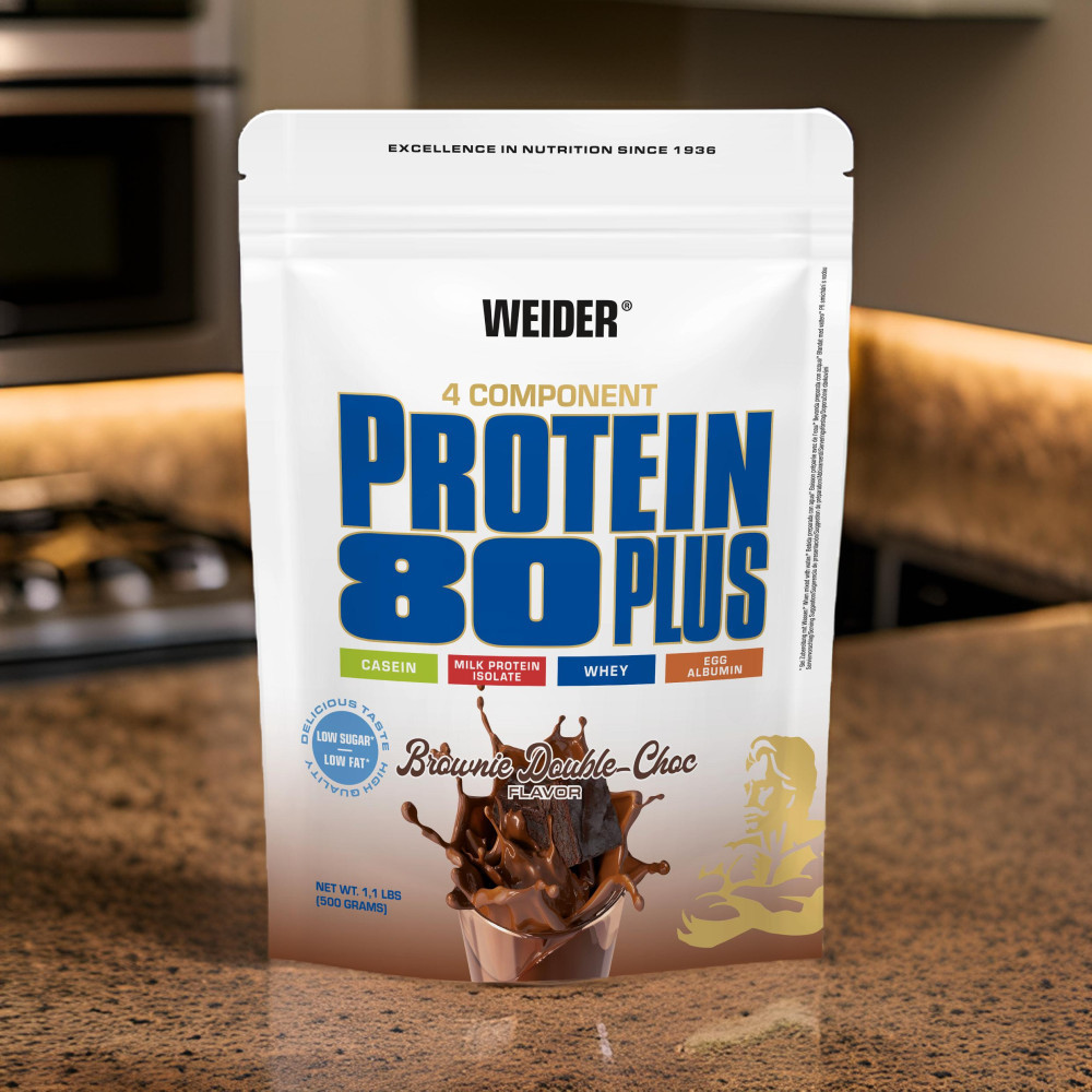 A Weider Protein 80 Plus többféle fehérjeforrás előnyeit ötvözi. Tartalmaz kazein fehérjét, tejsavófehérje koncentrátumot és tejfehérje izolátumot, valamint tojásfehérjét is. Elősegít az izomtömeg-növekedést és meggátolja a katabolizmust.