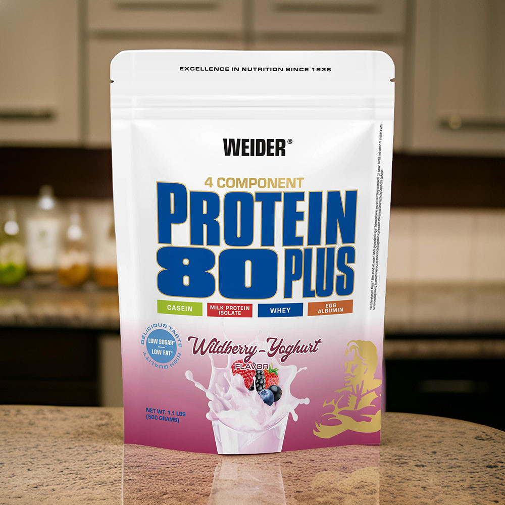 A Weider Protein 80 Plus többféle fehérjeforrás előnyeit ötvözi. Tartalmaz kazein fehérjét, tejsavófehérje koncentrátumot és tejfehérje izolátumot, valamint tojásfehérjét is. Elősegít az izomtömeg-növekedést és meggátolja a katabolizmust.