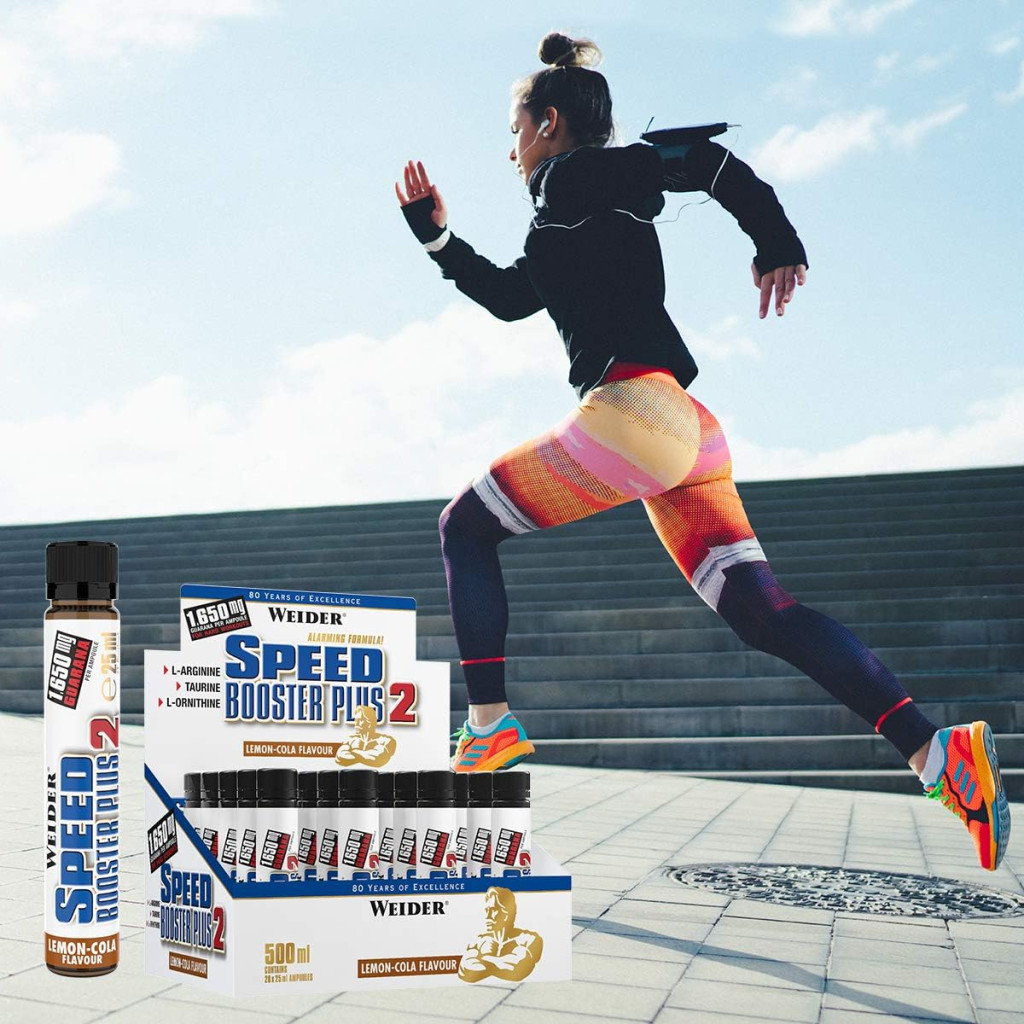 A Weider Speed Booster Plus 2.0 - kis palack amelyben nagy energia lakozik. 1650 mg guarana, 550 mg arginin, 558 mg ornitin, 55 mg metionin, 440 mg taurin adagonként.