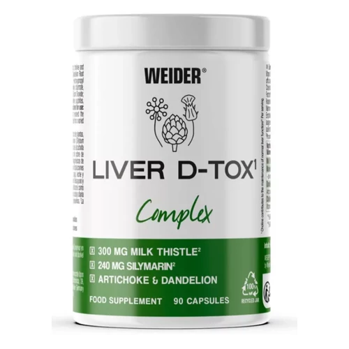 A Weider Liver D-Tox Complex egy erőteljes májvédő készítmény, amely olyan kulcsfontosságú összetevőket tartalmaz, mint a máriatövis, a gyermekláncfű, az articsóka és a B6-vitamin. Ezek az összetevők támogathatják a máj méregtelenítő folyamatait, javíthatják az emésztést, valamint fokozhatja az energiaszintet és az általános jó közérzetet. A természetes kivonatok egyedülálló kombinációja segíthet leküzdeni a stressz, a környezetszennyezés és a magas fehérjetartalmú étrend káros hatásait, miközben támogathatja a májműködést és a bélmozgást