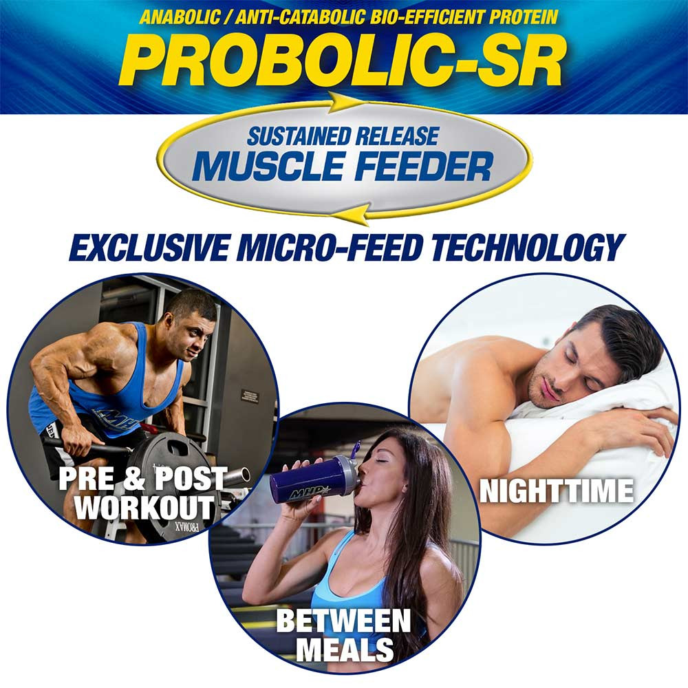 A PROBOLIC-SR kutatások által bizonyított tejsavó, szója és kazein fehérjekeveréke az exkluzív, elnyújtott hatóanyagleadású mikrobevonat technológiájával kombinálva kiváló izomépítő fehérje-kiegészítővé teszi. A PROBOLIC-SR fehérjeforrásait és a Microfeed technológiát úgy tervezték, hogy folyamatosan magas szintű kritikus aminosavakat biztosítsanak az izomnövekedés serkentése, az izomvesztés megakadályozása és a felépülés felgyorsítása érdekében. A PROBOLIC-SR többfázisú felszabadulása és folyamatos aminosav-ellátása ideális „bármikor” fehérjévé teszi. A gyorsan ható tejsavó és a hosszan tartó fehérjeforrások tökéletessé teszik az edzés utáni használatra, mivel gyorsan és folyamatosan ellátja az aminosavakat.