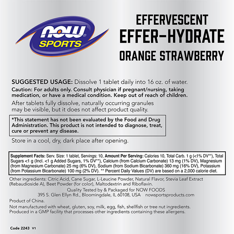 Now Foods Elektrolitos Pezsgőtabletta - Effer-Hydrate (10 Pezsgőtabletta, Narancs Eper)