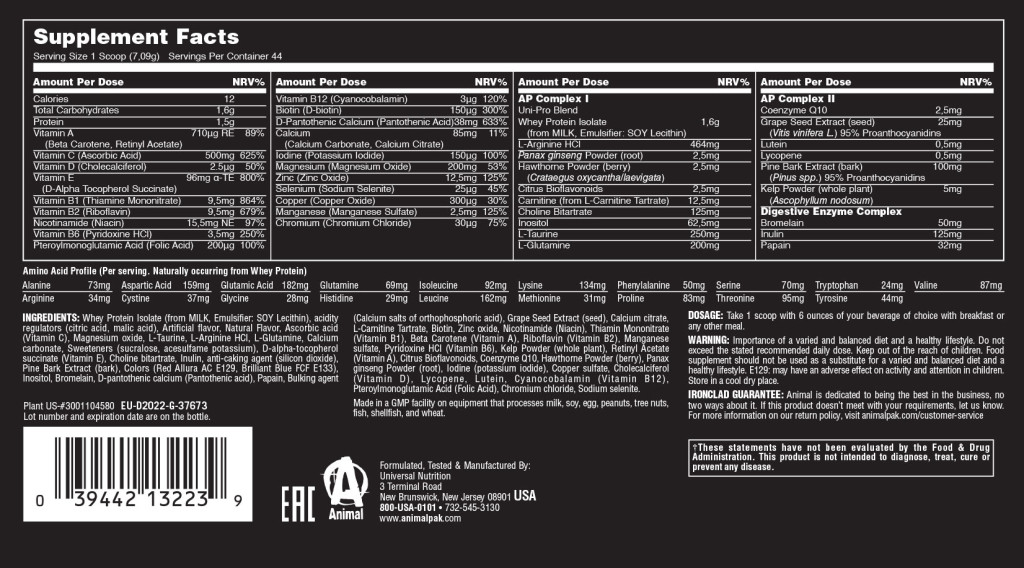 Az Animal Pak 1983 óta látja el a testépítők szervezetét mindazzal, amire a kőkemény edzésekhez és az extrém növekedéshez szükségük van. Vitaminokkal, ásványi-anyagokkal, aminosavakkal és mindazzal, amiről nem is sejtették, hogy meghatározza a nehéz vasakkal folytatott küzdelmük eredményét. Ez a testépítés történelmének valaha volt legteljesebb edzőcsomagja, melynek az elmúlt negyed évszázad során, még csak a közelébe sem értek! Az Animal Pak az a védő pajzs mely megvéd a táplálkozási hiányállapotoktól és a fejlődés megrekedésétől!