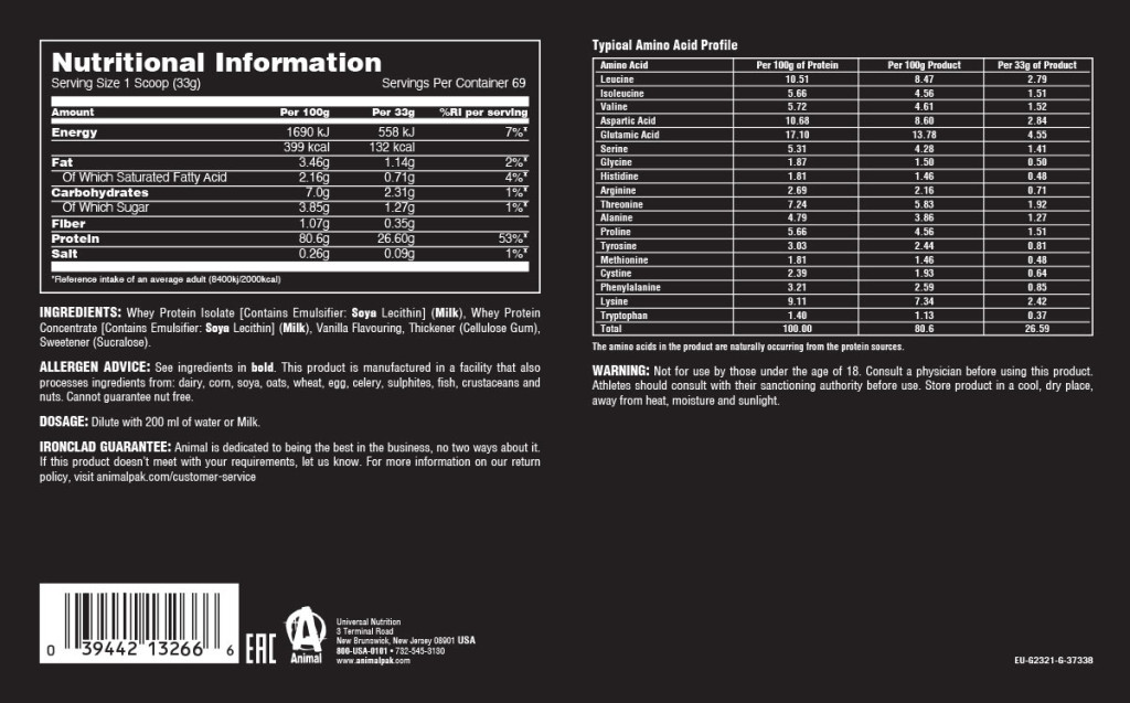 Az ANIMAL WHEY, a legmagasabb minőségű források keveréke, CFM (keresztáramú mikroszűréssel nyert) tejsavó fehérje izolátum, ultraszűrt tejsavó fehérje koncentrátum, emésztőenzimekkel kiegészített mátrixa. A legmagasabb standard a fehérje kiegészítők világában, mely joggal viseli a vasak világának egyik legikonikusabb nevét és jelképét a dobozán...a jól ismert ANIMAL feliratot!