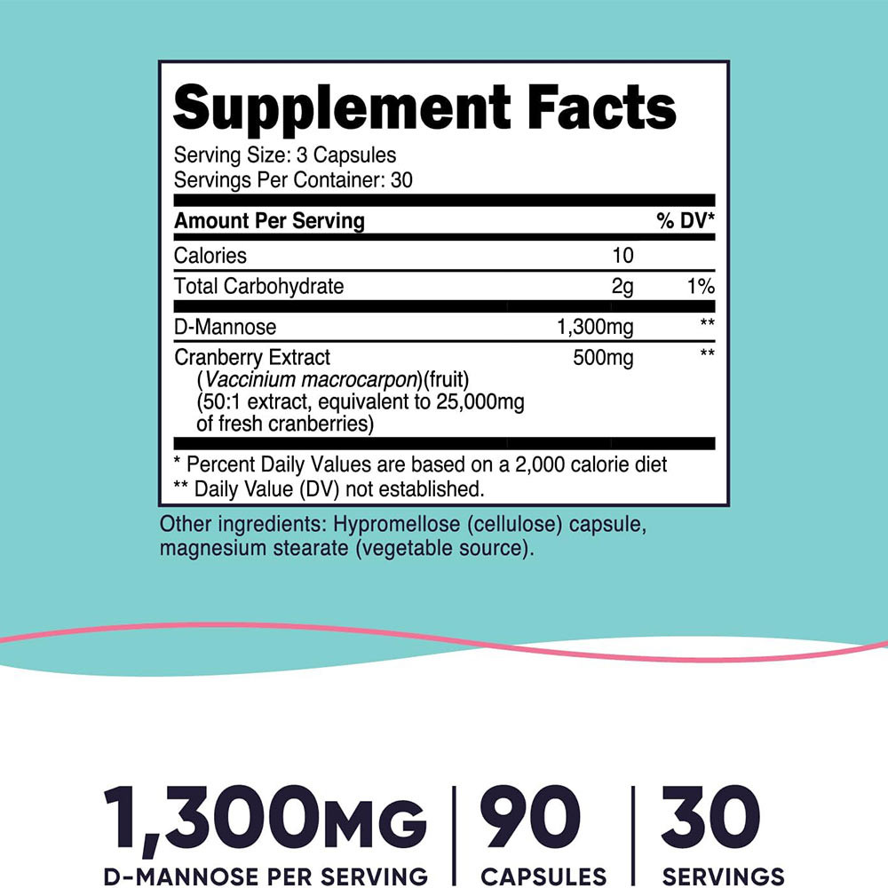 Nutricost D-Mannose with Cranberry Extract for Women 1300 mg (90 Kapszula)