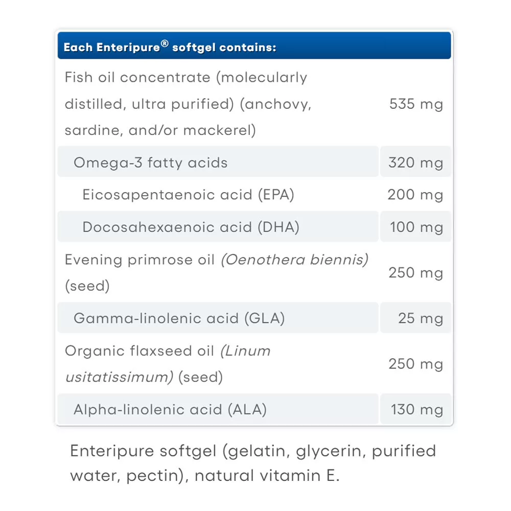 A Natural Factors Women's Complete RxOmega-3 esti primula- és lenmagolajjal egy teljes spektrumú esszenciális zsírsav-kiegészítő, amelyet a nők általános egészségének elősegítésére terveztek. A halolajból származó DHA és EPA esszenciális zsírsavakat keveri az ALA és GLA növényi eredetű forrásaival, a nők igényeinek megfelelő optimális omega-3 és -6 egyensúlyban.