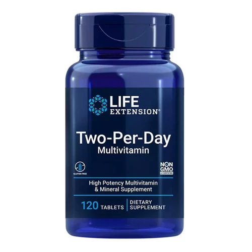 A Life Extension's Two-Per-Day tabletták a legmagasabb táplálkozási hatékonysággal rendelkeznek minden olyan tudományos alapú multivitamin-formula közül, amely elfér két napi tablettában. Ez sokkal nagyobb hozzáférhetőséget biztosít az alapvető vitaminok, ásványi anyagok és tápanyagok számára, mint sok szokásos bolti készítmény. Minden hatóanyag számtalan módon támogathatja az általános egészséget. Rengeteg hozzáadott vitamint, ásványi anyagot és nyomelemet tartalmaz a mindennapi egészségmegőrzés érdeklében!